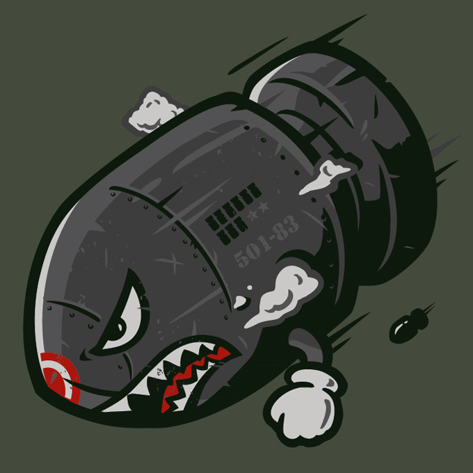 Bullet Bill joined the military and is choosing his Mushroom Kingdom target wisely. This WinterArtwork variation is now available at SplitReason.
