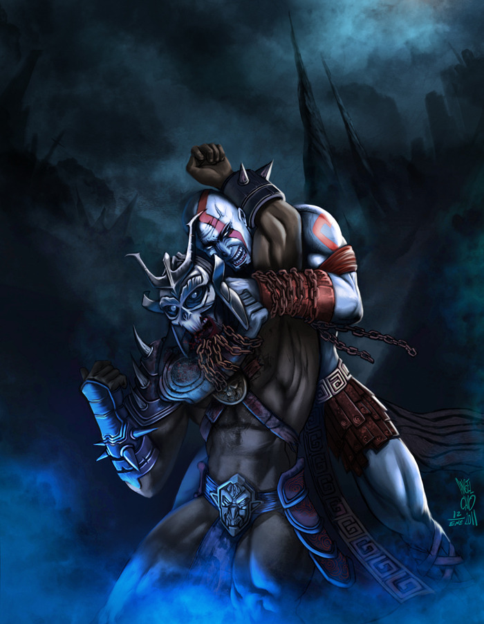 Angel Cano forged a battle of epic proportions! Mortal Kombat’s Shao Khan takes on the colossal God of War killing machine Kratos!
