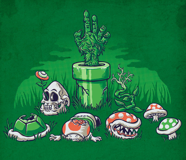 The Mushroom Kingdom is suffering from a Zombie outbreak! Vote for Lucky1988’s killer “Zombies! Zombies! Zombies!” theme entry at Shirt.Woot.