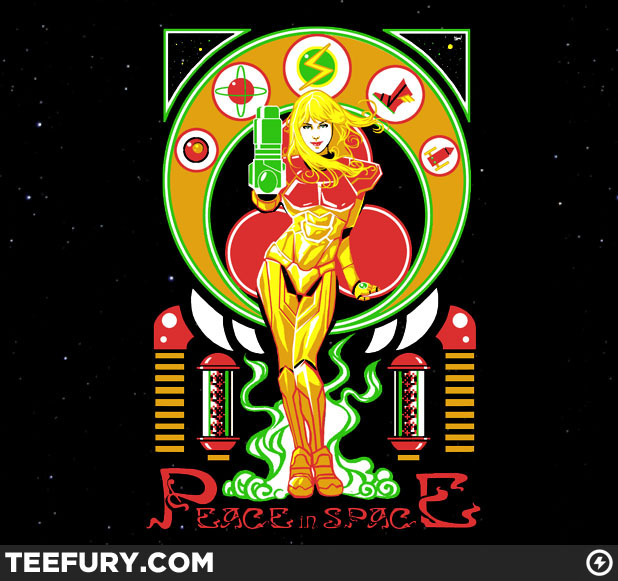 Timothy Lim’s art nouveau style Metroid shirt design will be on sale Saturday (04/23) at TeeFury.com. Get some!