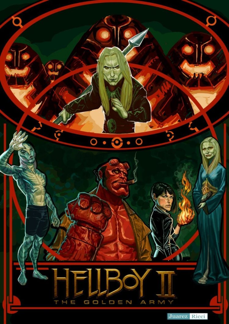 The forces of good and evil collide in this Hellboy II illustration by Juarez Ricci.