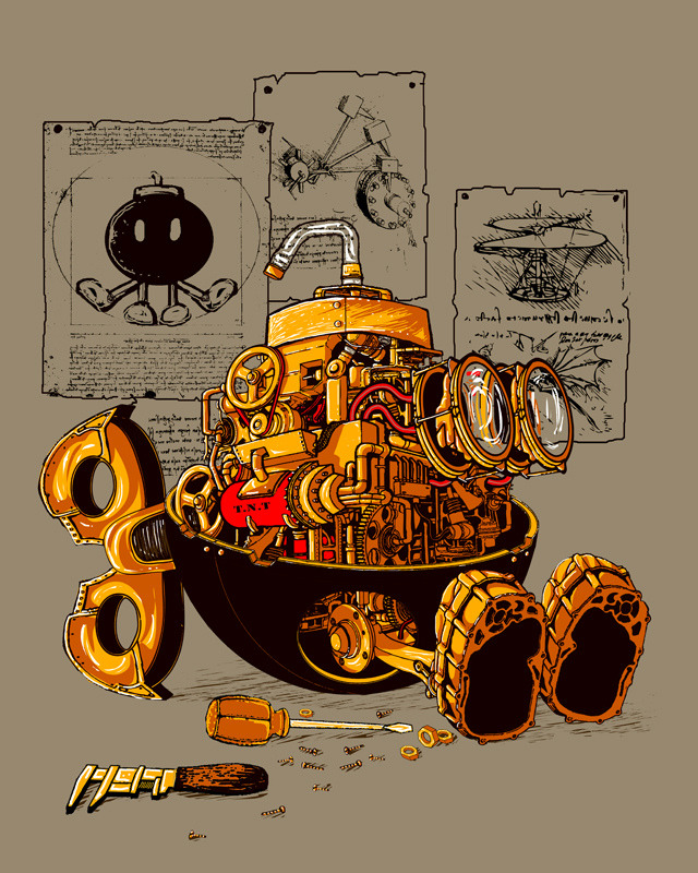Artist Vincent Bocognani shows us how Mr. Bob-omb would have looked if Leonardo da Vinci built him. Vote this excellent shirt design up on Threadless!