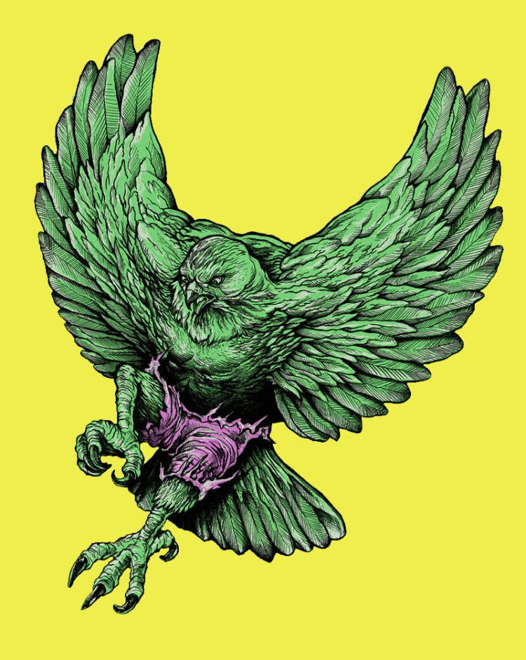 The Incredible Hawk is angry and ready to smash some skulls! This crazy cool mash up is now up for voting over at Threadless.