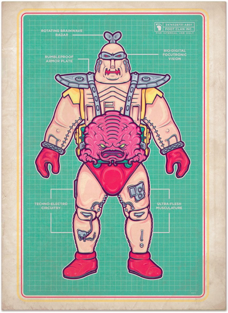 Krang and his mechanical body get labeled by artist Steve Dressler. This piece was created for The Autumn Society’s “Shell Shock” TMNT show on June 3rd.