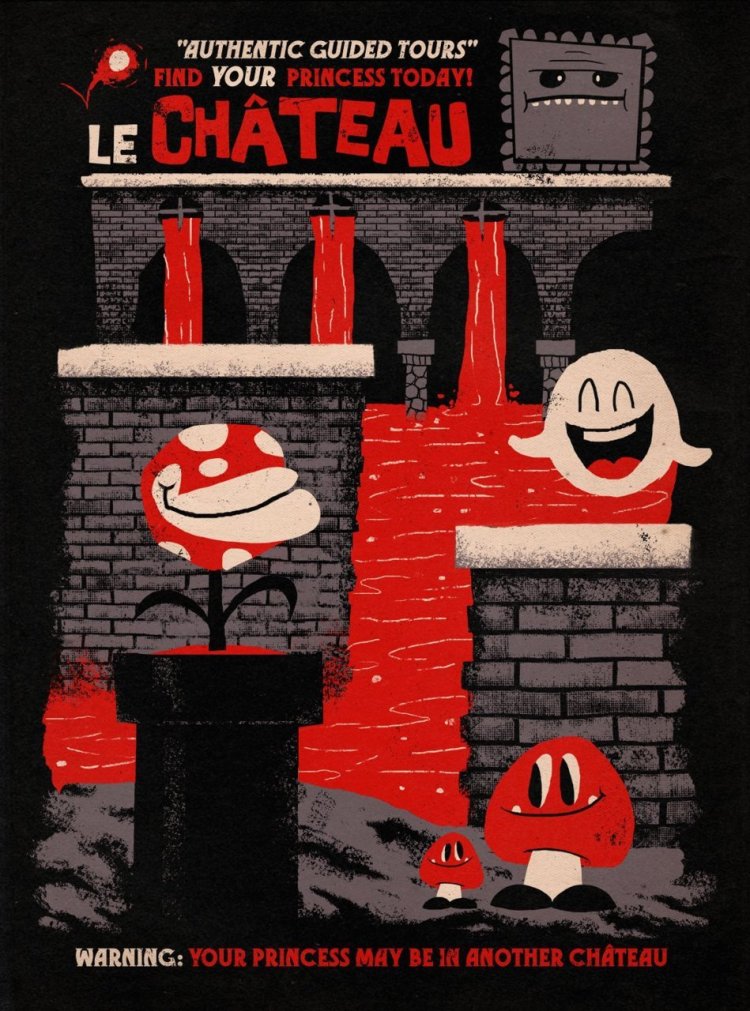 Take a tour of the beautiful castles / châteaux in Mushroom Kingdom thanks to Jublin and his shirt design on sale Wed (5/25) at TeeFury.