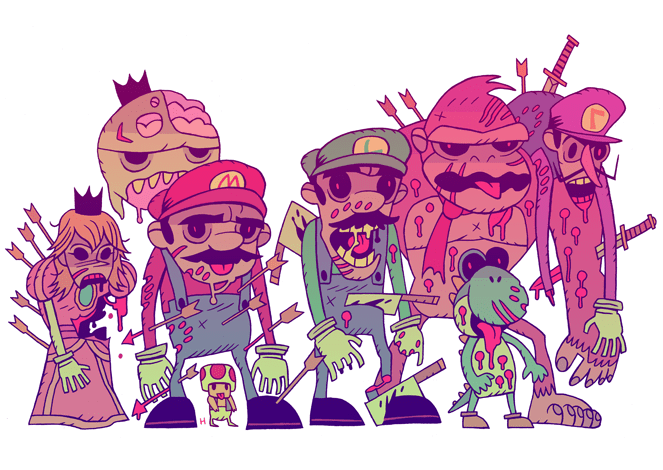 Mario has spread a zombie infection across the entire Mushroom Kingdom thanks to artist Dan Hipp. No more mushrooms… just tasty brains!