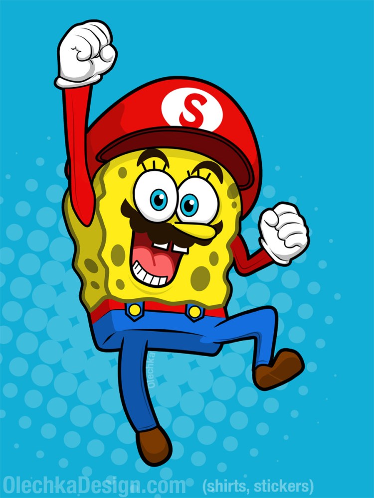 SpongeBob SquarePants and Mario rule the land and under the sea in Olechka’s new mash up design. Now available at RedBubble!