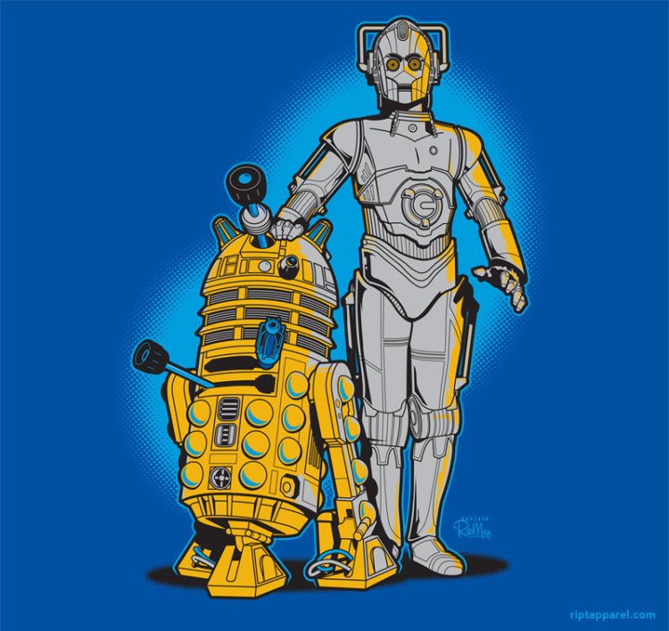 The robotic characters from Star Wars and Doctor Who share roles in Captain RibMan’s new shirt design. Available Tuesday (5/31) at RIPT!
