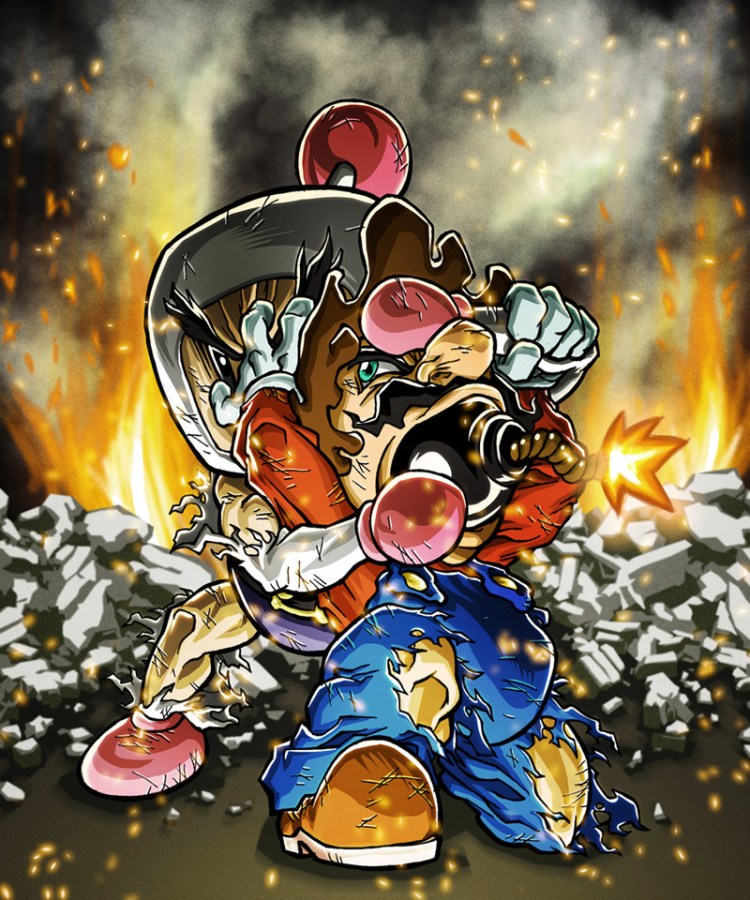 Mario and Bomberman have a fight to the death in Sebastian Von Buchwald’s new match up. That’s some explosive breath Mario!