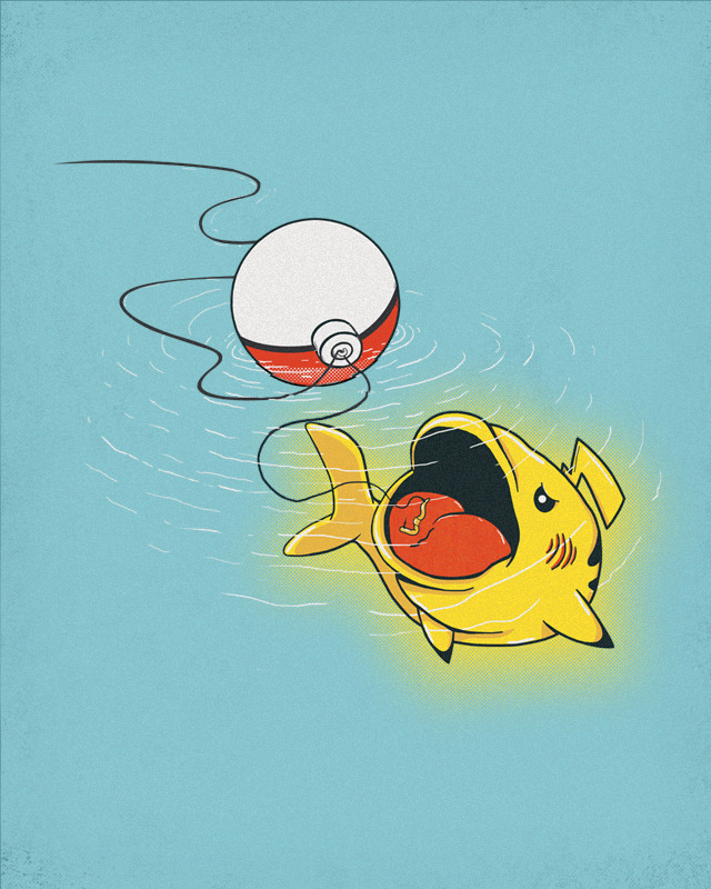 The person on the other side of that fishing line is about to get a real pikashock! New rad design by Phil Jones & David Soames. Vote it up at Threadless!
