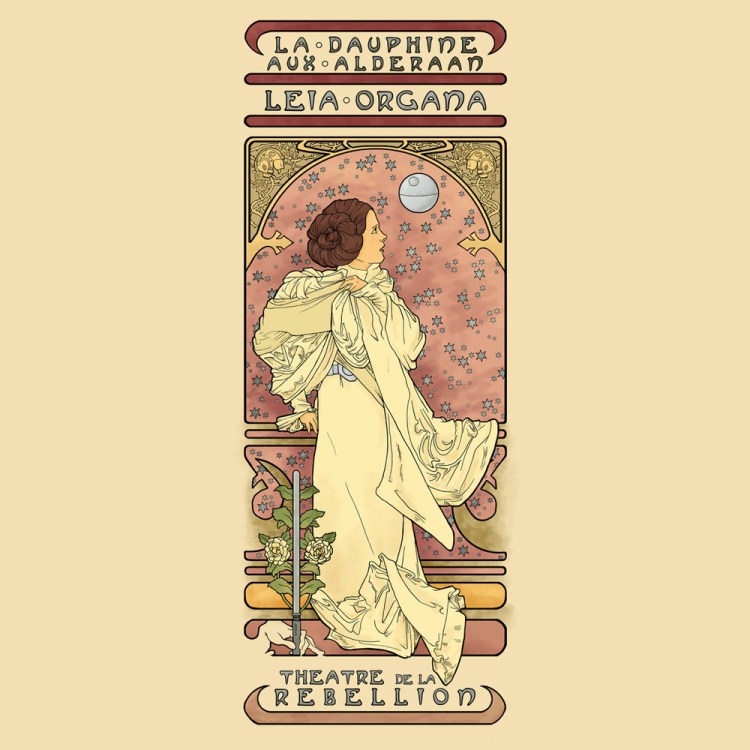 Princess Leia looks out at the Star Wars Galaxy in Karen Hallion’s amazing Art Nouveau / Alphonse Mucha style design.