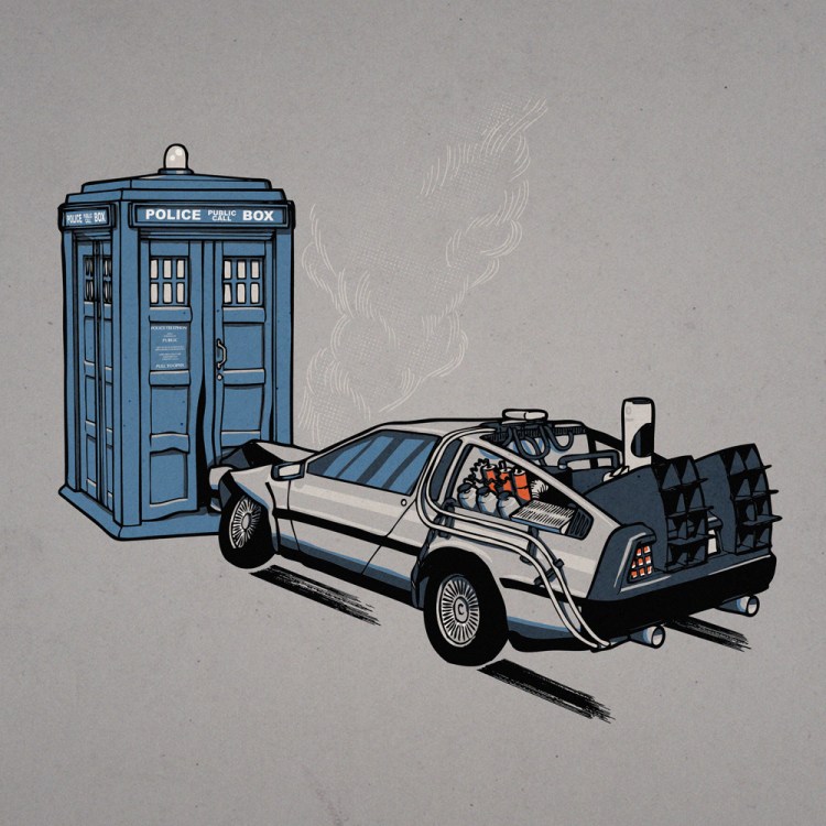 Back to the Future and Doctor Who play a little time traveling chicken in Aled Lewis’ shirt design. Grab it up for $12 at Shirt.Woot.