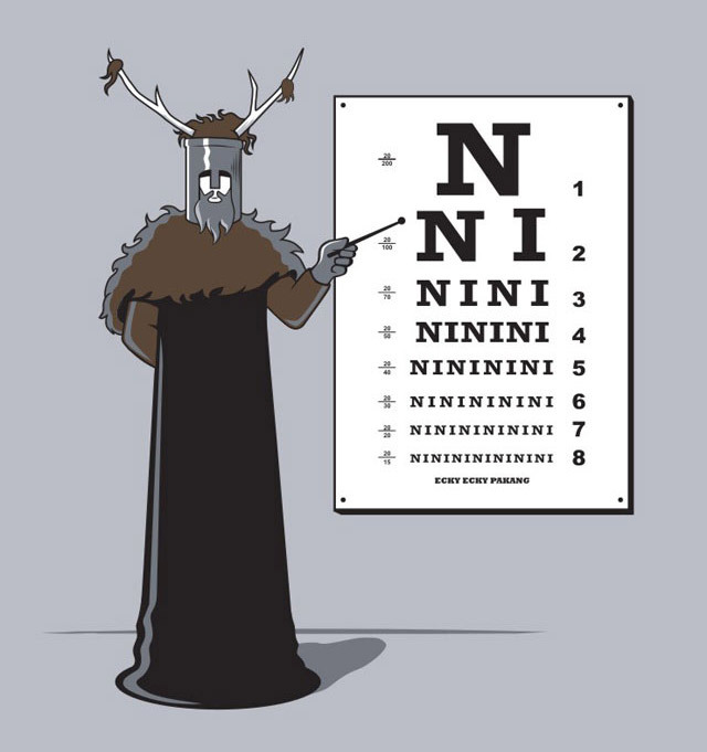 Monty Python’s Knights of Ni are now giving out customized eye exams courtesy of artist Eduardo San Gil. “We are the Knights who say, Ni!”