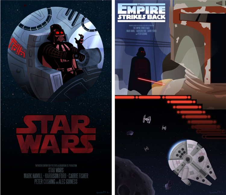 A New Hope and The Empire Strikes Back get a stylized Star Wars poster redesign by artist Matt Synowicz.