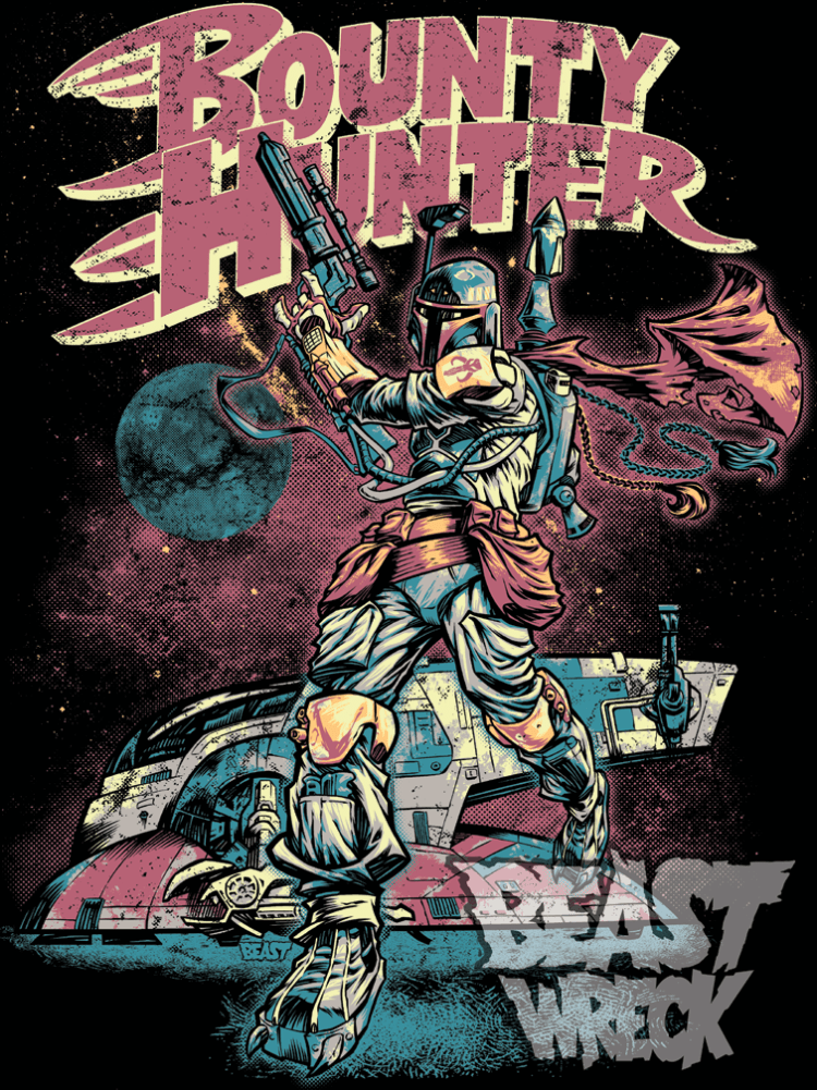 BeastPop’s killer Boba Fett / Speed Racer mash up shirt design “Slave I Racer” is now available to buy at his online store so go capture one!