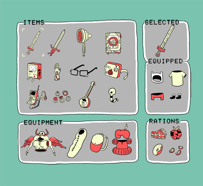 Designer Dale Austin took the legendary show Adventure Time and gave it a video game RPG / Zelda twist. Shmowzow! Dale is also here on Tumblr.