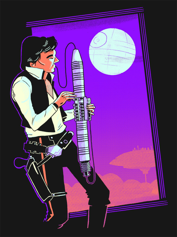 Han throws down a smooth groove for the entire Star Wars galaxy to enjoy in this rockin’ shirt design by Mitch Loidolt. You can vote it up at Threadless.