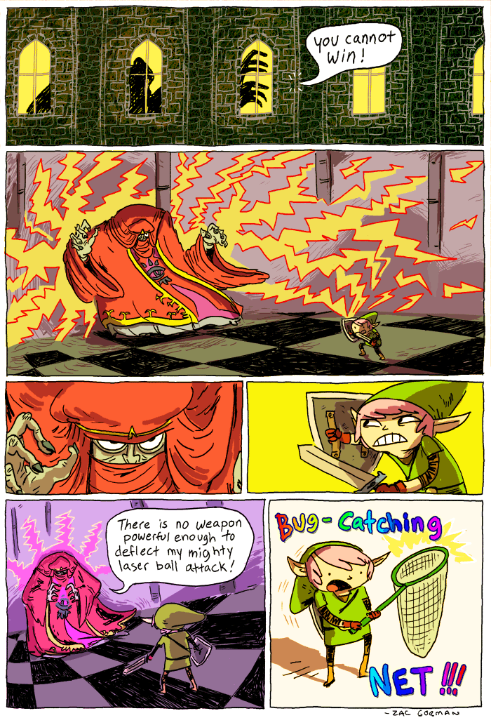 According to artist Zac Gorman, Link’s bug-catching net is as powerful as the Master Sword when wielded against dark wizards! hah!