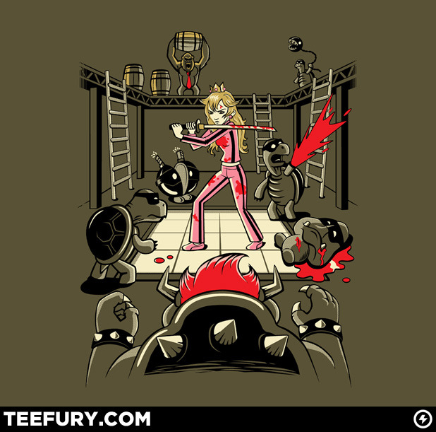 Princess Toadstool is holding a Kill Bill style whoop ass party for all who did her wrong. Eduardo San Gil’s design is on sale today (7/19) at TeeFury.