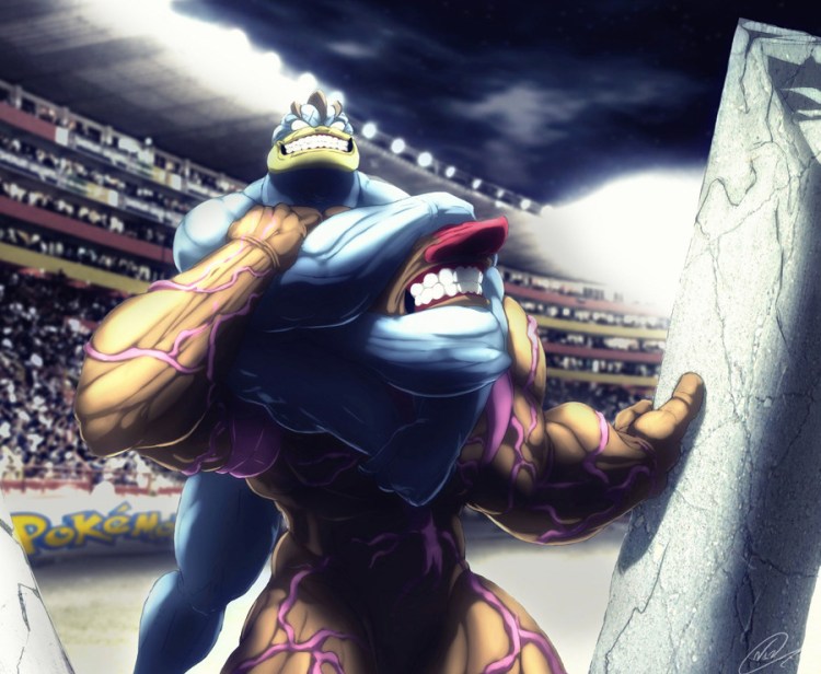 Machamp is putting a severe hurting on Conkeldurr in this fighting-type Pokemon redesign by deviantARTist Namh.