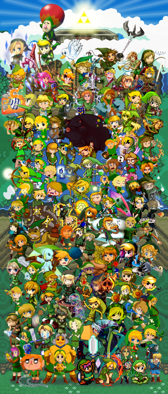 With almost 100 artists collaborating together on this one amazing / massive Zelda 25 Year Anniversary piece, the list was just too long to write out. You can check out the full size view and list here.