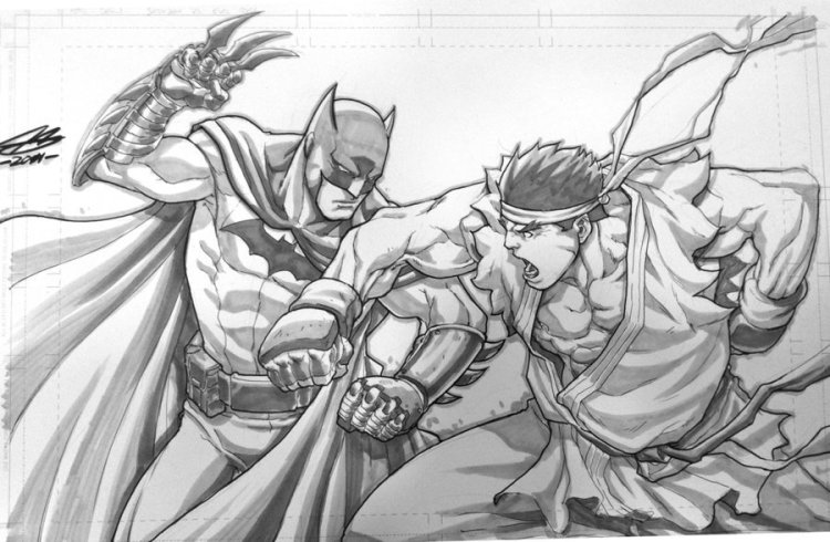Evil Ryu and Batman duke it out in this intense SDCC commission by Joe Ng.