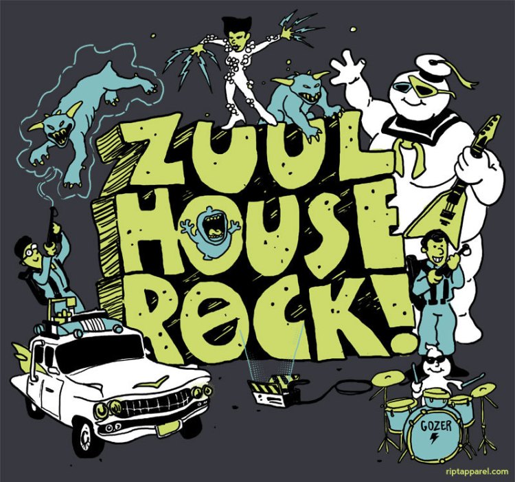 The Ghostbusters and Schoolhouse Rock get blasted into the same shirt design by Hillary White. On sale Saturday (7/30) at RIPT for $10.