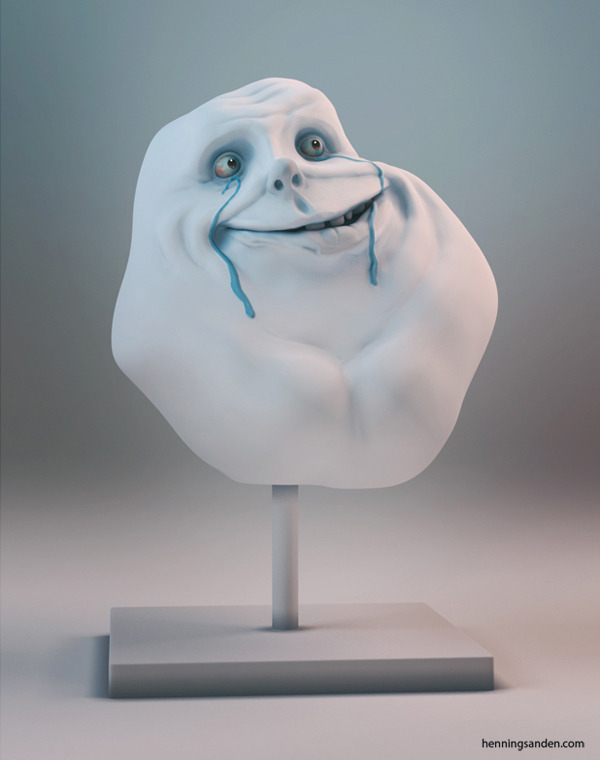 The creepy looking Forever Alone meme got a complete 3D makeover by artist Henning Sanden. Check out the actual printed model here.