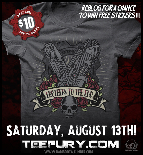 Brothers stick together to the end and Crystal Fontan’s ass kicking Gears of War design proves. This shirt is on sale at TeeFury Saturday (8/13) for $10.