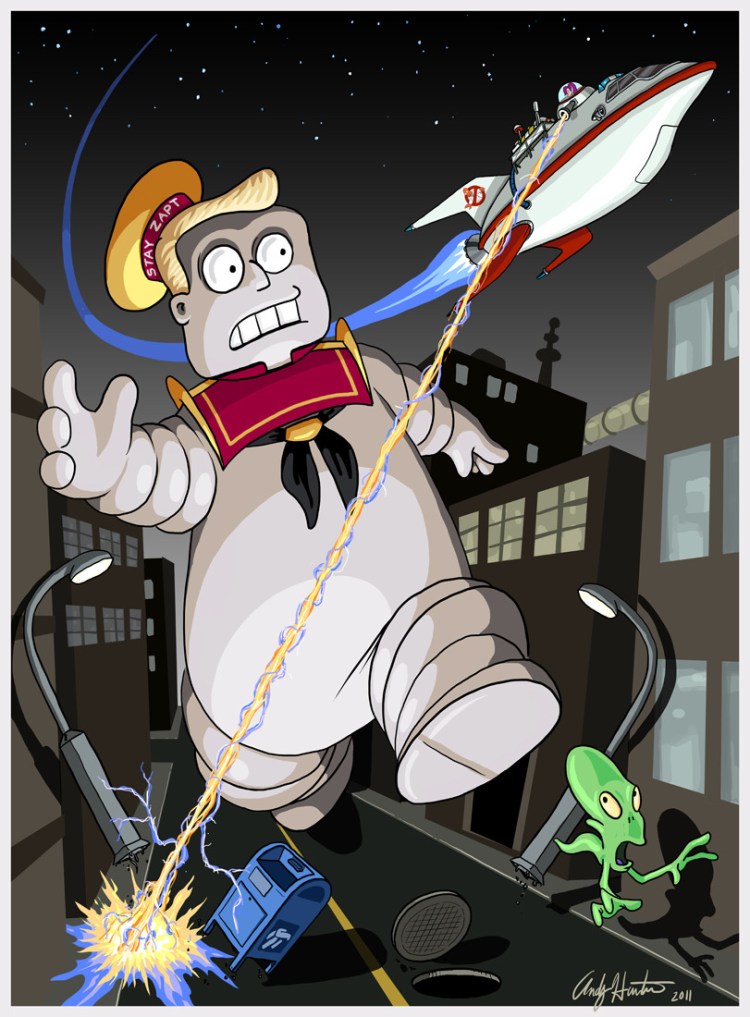 The cast of Futurama got a full on Ghostbusters redesign by Tumblr artist Andy Hunter. Check out more Futurama / Ghostbusters mash ups at Draw2d2.