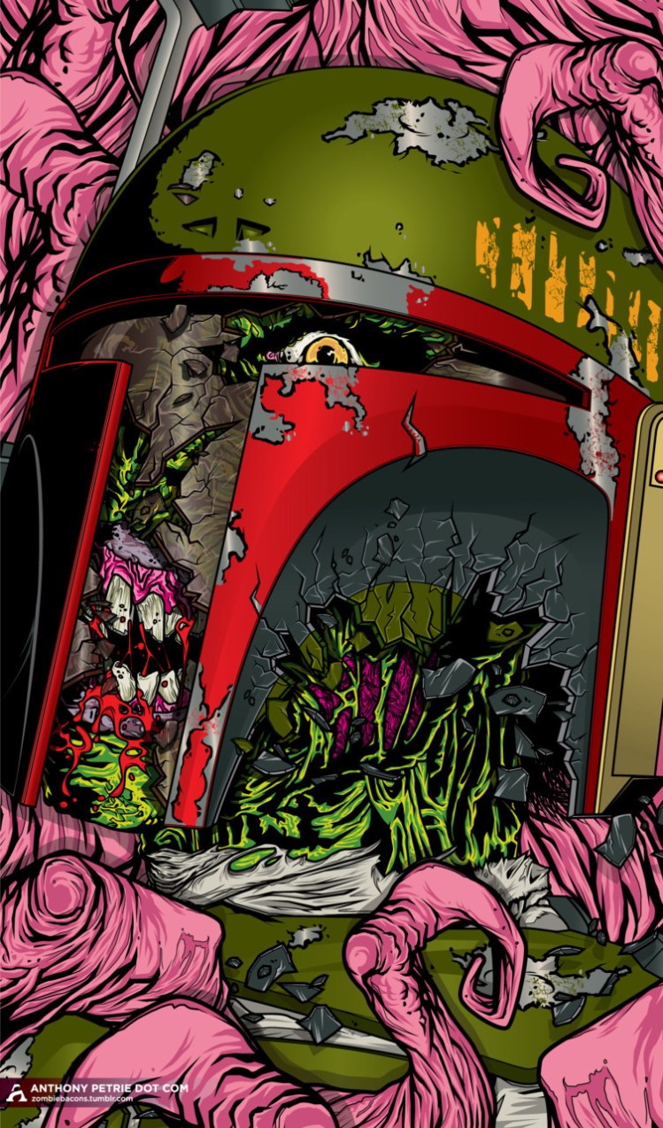 Artist Anthony Petrie imagines what it would have looked like for Boba Fett in the Sarlacc Pit. If he were a crazed / awesome looking zombie, of course.