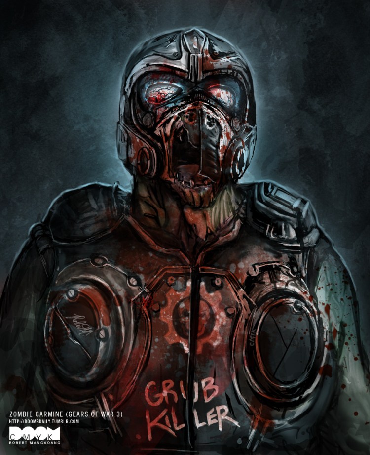 What a killer Gears of War 3 illustration Robert Mangaoang! Carmine ran into a bad bunch of Locust zombies in his last battle.