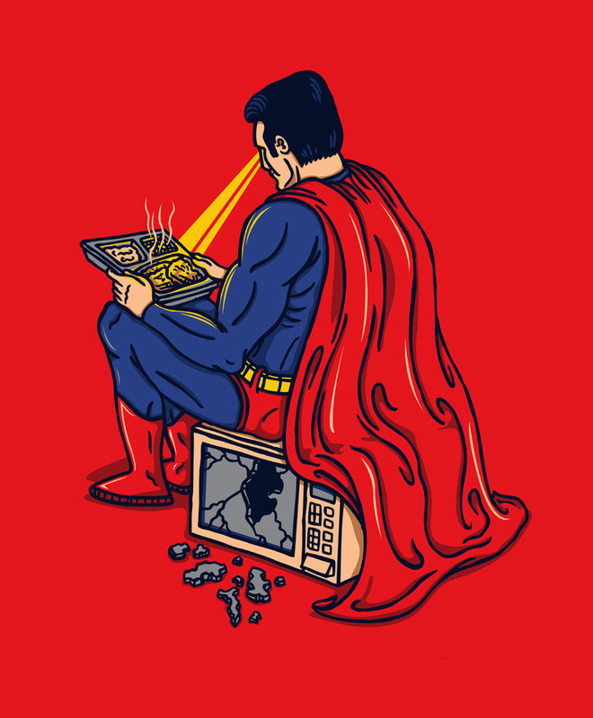 Who needs a noisy microwave when you can use a small amount of heat vision? David Creighton-Pester’s super funny design is now on sale at Society6.