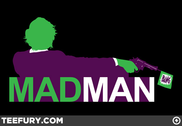 The Joker being mixed up with the television show Mad Men works great in James Mitchell’s new shirt design. On sale Sunday (8/28) for $10 at TeeFury.