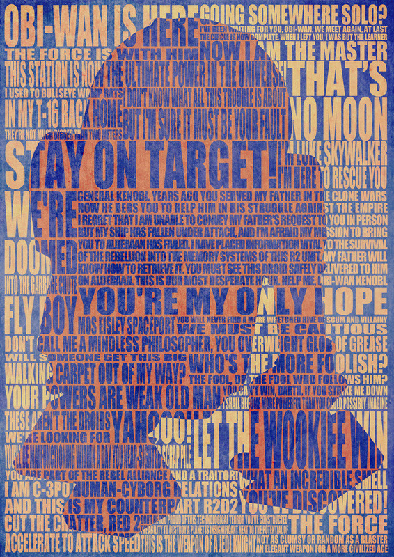 Artist Pete Bessent took a monstrous list of quotes from Star Wars and created a rad R2-D2 type poster. Prints, iPhone or laptop skins available at Society6.