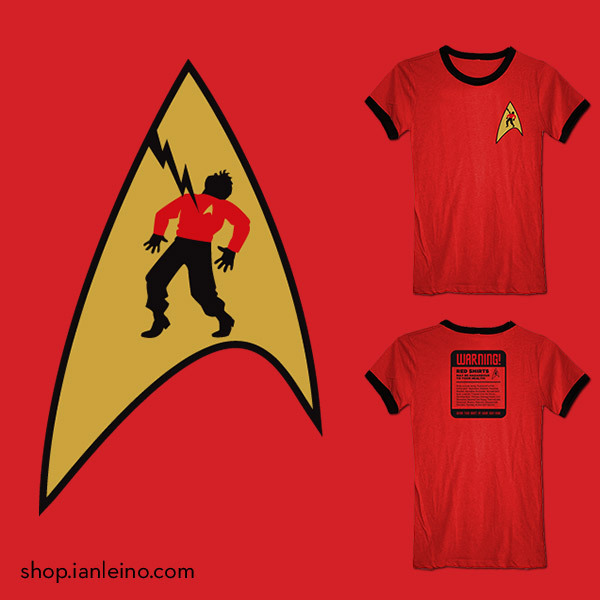 Double-sided shirts are on sale at Ian Leino’s personal shop. There are also single-sided versions available at RedBubble. Dammit Jim!