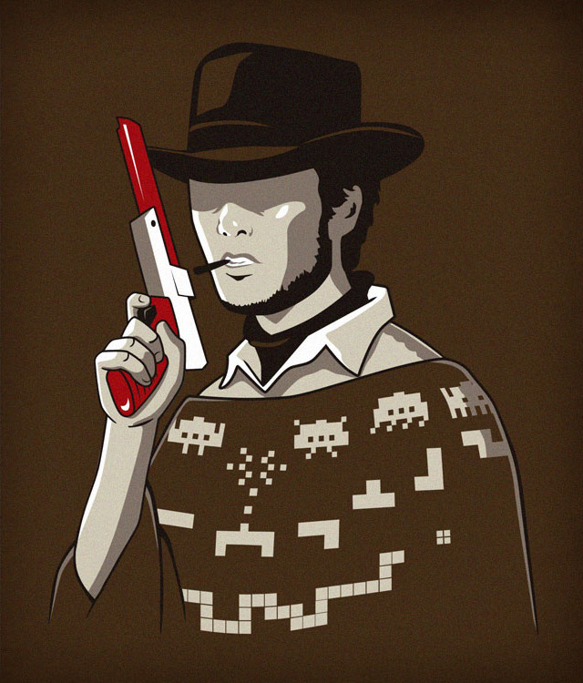 Clint Eastwood gets a video game upgrade in this “Fistful of Dollars” film parody designed by Eduardo San Gil. Vote it up at J!NX to see it print.