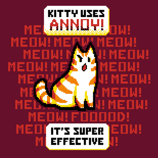 You probably should have ran away from this feline Pokemon battle created by Diana Sprinkle. Her super effective shirt is on sale now at Shirt.Woot for $10.