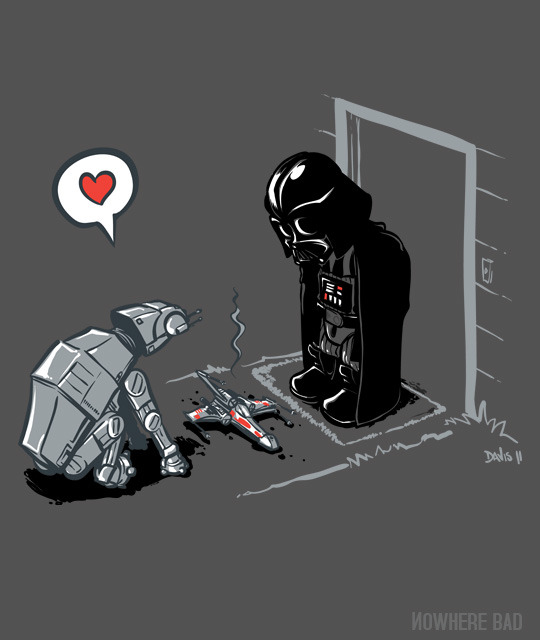 Cat-Ats know how to show they love… in a Dark Side sort of way. Nathan Davis’ new Star Wars shirt / print is now on sale for 4 days at Nowhere Bad.