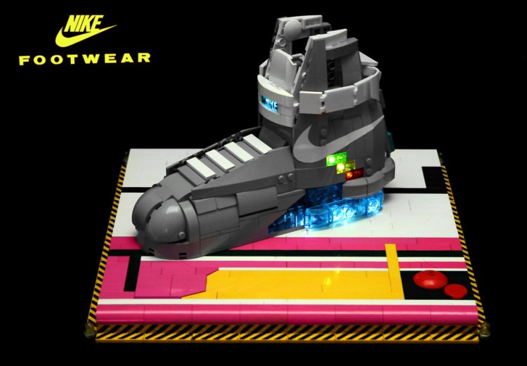 In honor of Nike’s last day of taking eBay bids for the Back to the Future MAG sneakers, artist Alex Jones re-created the shoes in LEGO form.