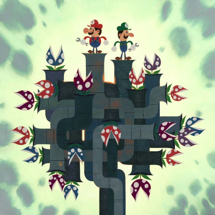 Drake Brodahl brings the pipe dreaming Mario Bros together again in his new painting. Created for Gallery 1988’s “Old School Video Game Show" going until October 8th in Santa Monica, CA. See more show pieces here.
