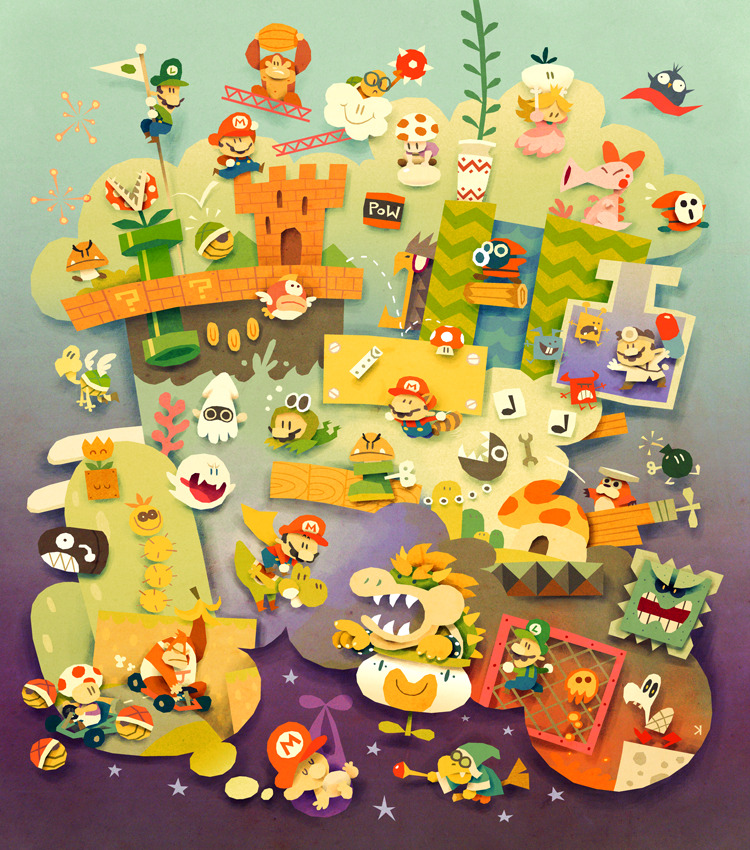 It’s a lot of Mario packed into one massive piece of fan art by Ken Wong. Various sized gallery-quality giclée prints ($20-$80) are now available at inPRNT.