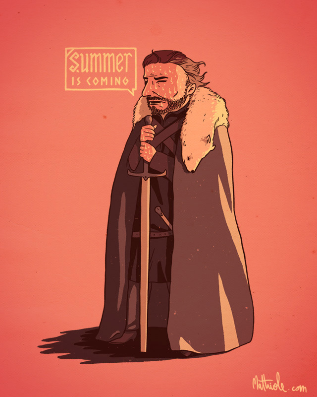 Winter has come and gone in the Game of Thrones realm. Artist Matheus Lopes brings a new fear to the land though… Summer! This humorous shirt design is now up for vote over at Threadless.
