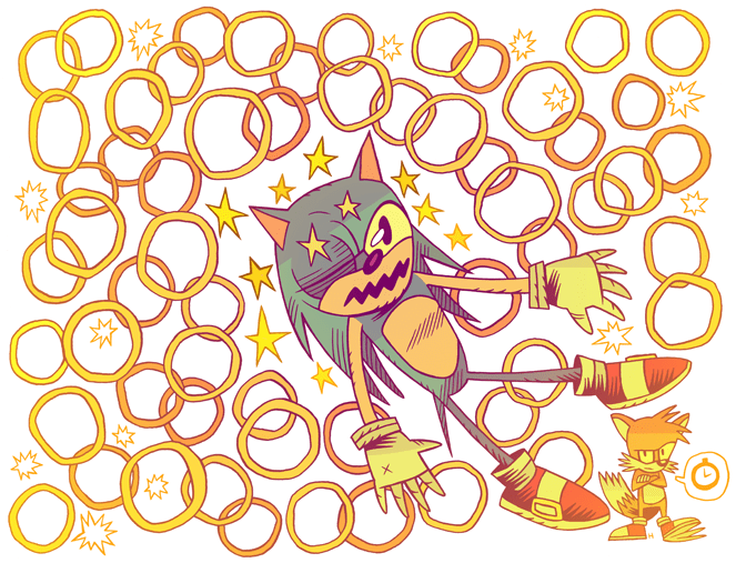 The true Lord of the Rings is, of course, Sonic the Hedgehog. You can buy Dan Hipp’s original 8.5" x 11" b&w blog illustration here.