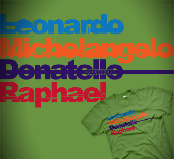 The TMNTs get a weaponized typographic design by Tumblr artist Daniel Sotomayor. Shirts on sale for only 6 more hours at Qwertee.