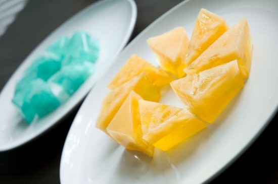 For the making of the orange shot and how to cut up the jello to look like an Aperture Science logo, check out Kristina’s Knuckle Salad website.