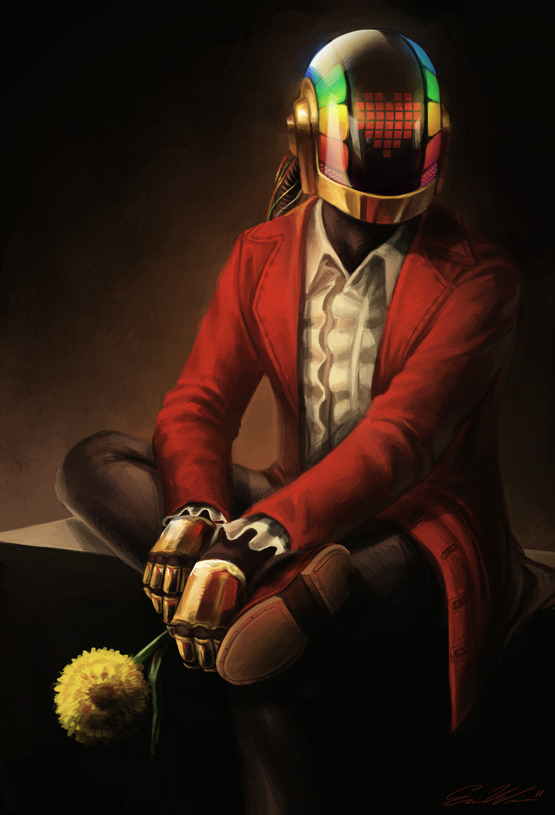 Daft Punk’s Guy-Manuel is caught in his Interstella 5555 get up thanks to Tumblr artist hearditbothways. What a musically bad ass illustration.