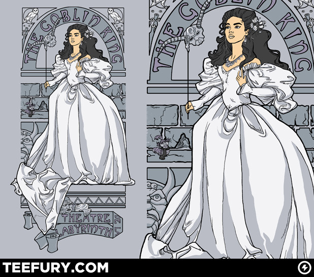 Sarah sets out to save her brother Today in Karen Hallion’s excellent Labyrinth shirt design given an Art Nouveau style. On sale today (10/17) for 4 more hours at TeeFury. Grab it up before Toby is lost to The Goblin King forever!