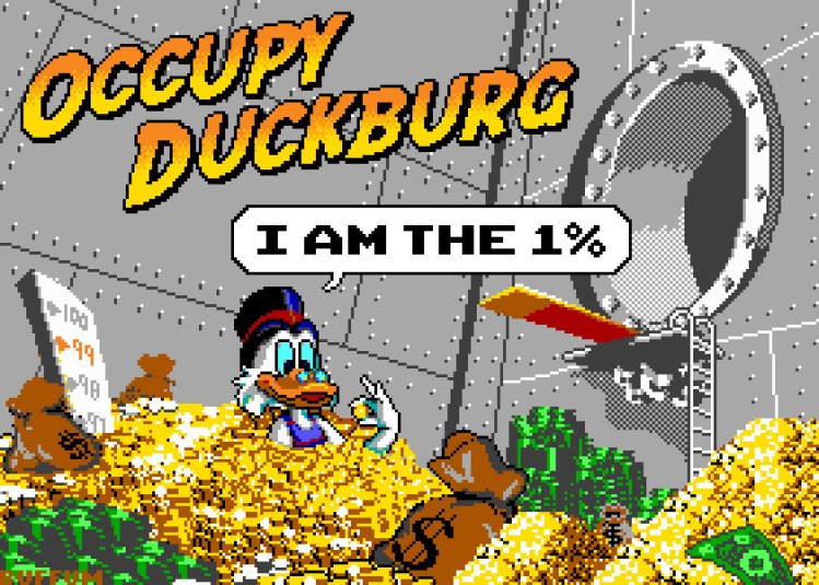 Wondering who is in the 1%? Scrooge McDuck is, of course! Jude Buffum brings his pixelated art skills to the Occupy Wall Street scene.