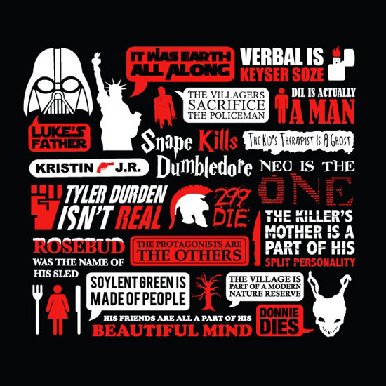 A ton of your favorite movies have been gathered up, spoiled and served in Olly Moss’ awesome shirt design. Reprints are now on sale at Threadless!